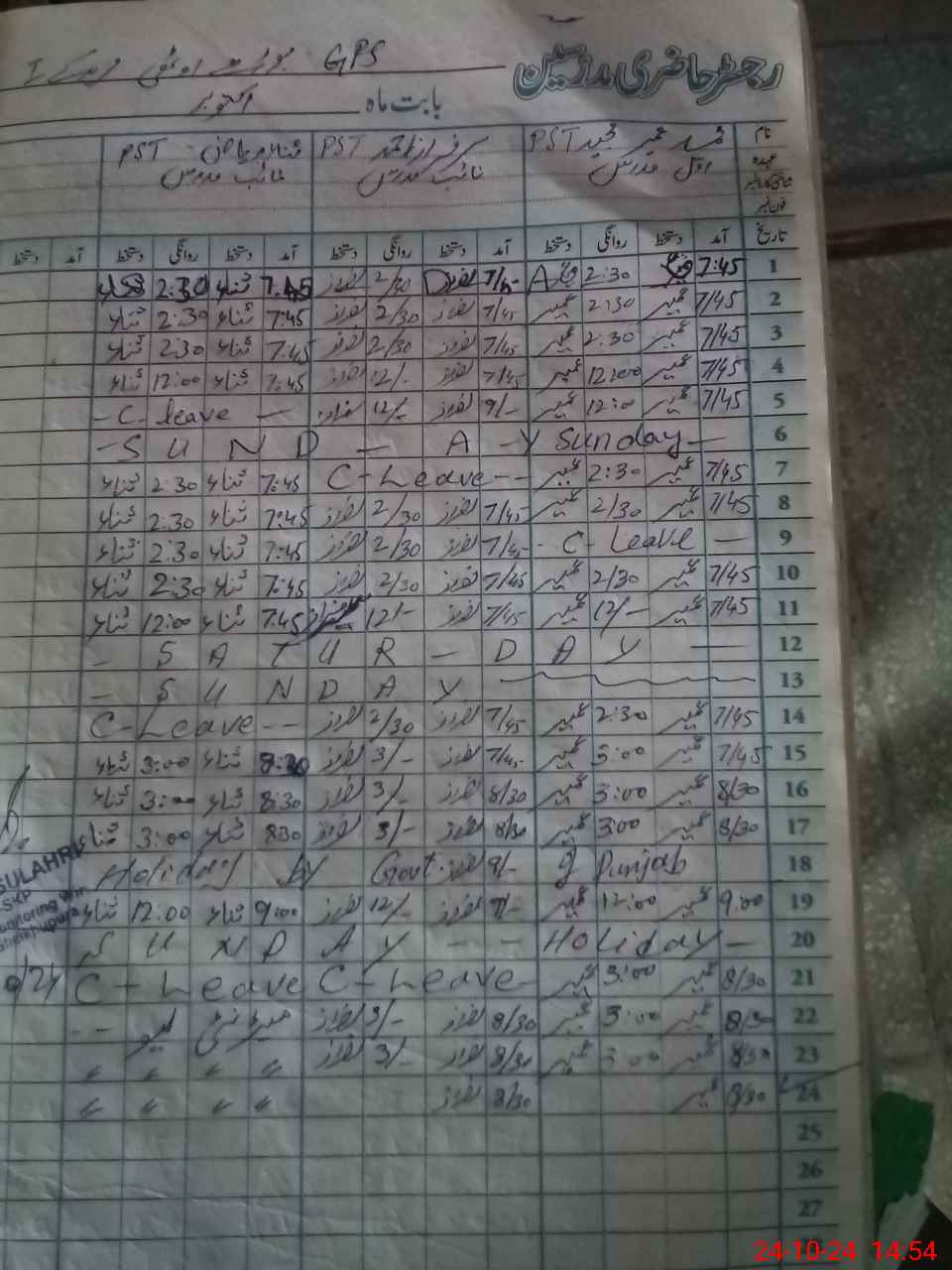 | 35**** | Sa**** Ri**** | PST | Regular | 3 | 0 | 0 | 0 | 0 | 0 | 0 | 0 | 3 | Maternity |