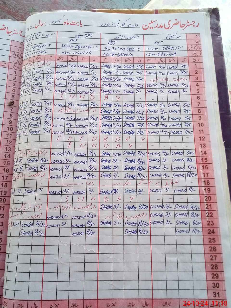 | Name: MU**** SH**** Designation: (School Headmaster's/Headmistress's) PST/ Phone/Cell Number: 03**** |