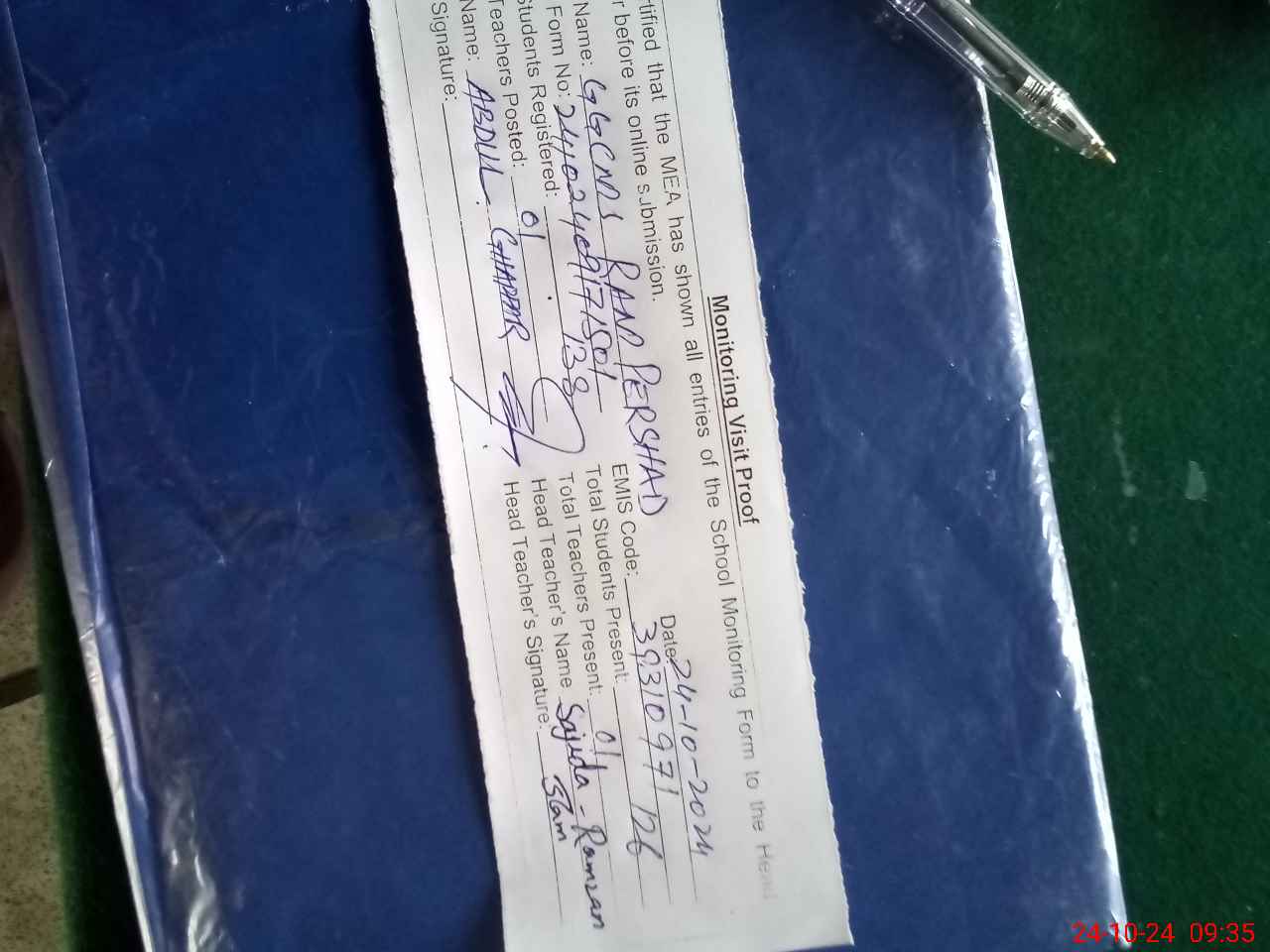 | EMIS Code: 39310971 | Name of School: GGCMS RAM PRASHAD | |||
