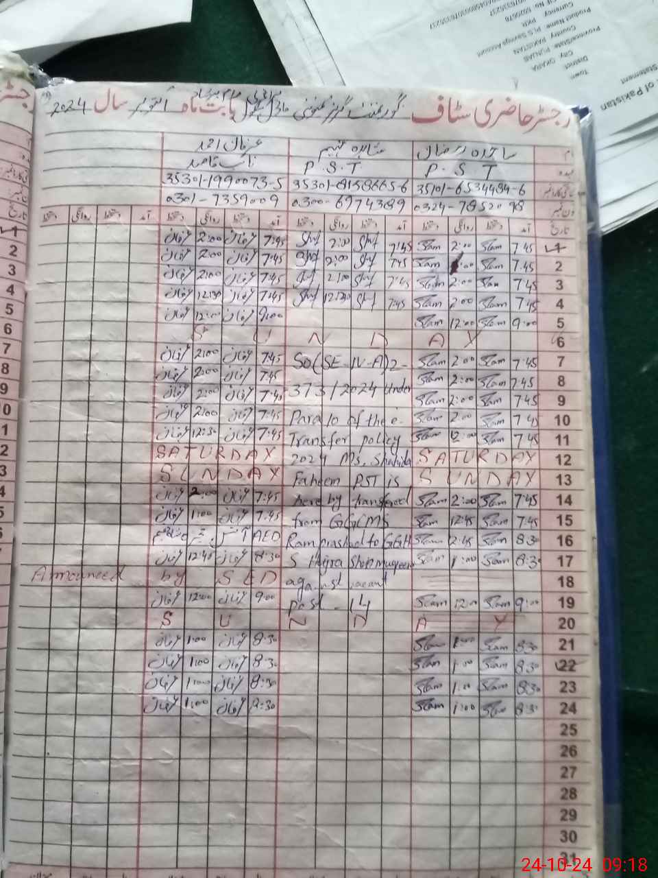 | Name: SA**** RA**** Designation: (School Headmaster's/Headmistress's) PST Phone/Cell Number: 03**** |