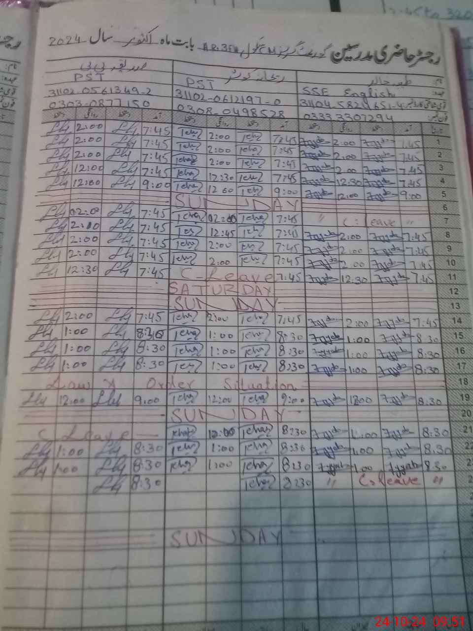 | CNIC | Full Name | Designation | R/C | Absence during last cal. month |