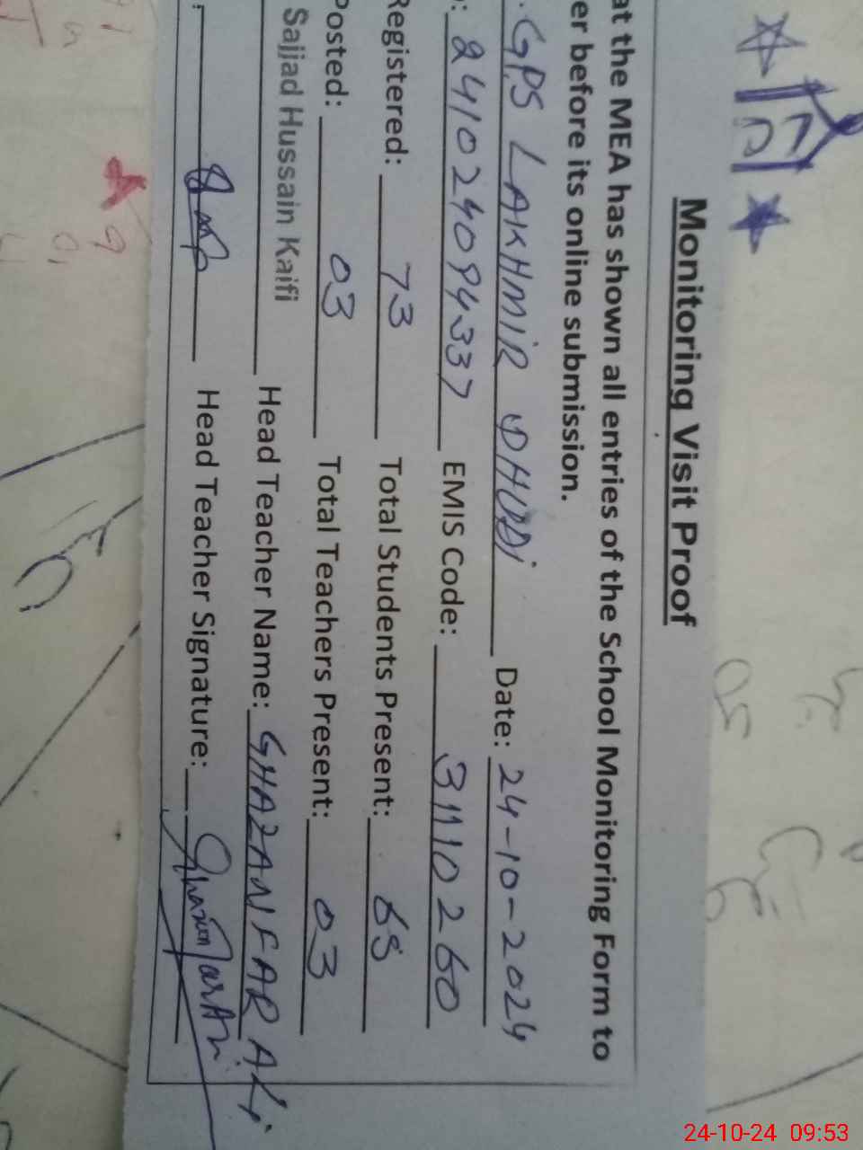 | EMIS Code: 31110260 | Name of School: GPS LAKHMIR DHUDI | |||