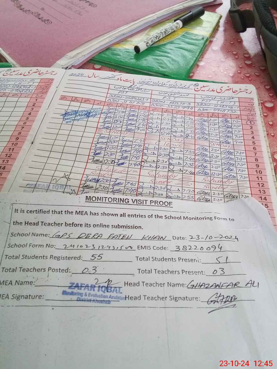 | EMIS Code: 38220094 | Name of School: GPS DERA FATEH KHAN | |||