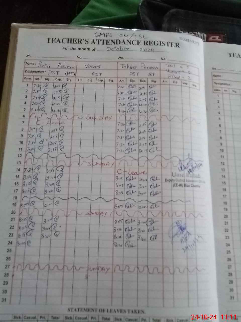 | Name: Sa**** As**** Designation: (School Headmaster's/Headmistress's) PST Phone/Cell Number: 03**** |