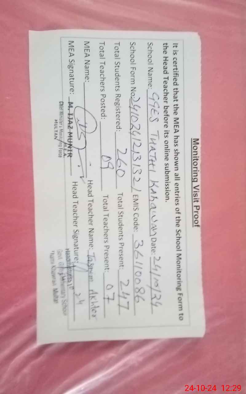 | EMIS Code: 36110086 | Name of School: GGES THATHI KHAHWARAN NEAR BIG CANAL MUZAFFAR ABAD | |||