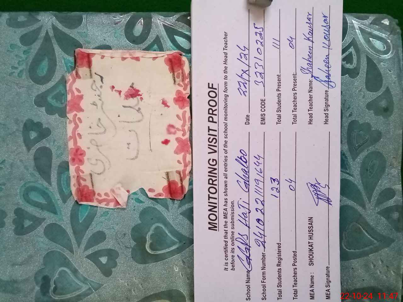 | EMIS Code: 32310225 | Name of School: GGPS HAJI GHALOO | |||