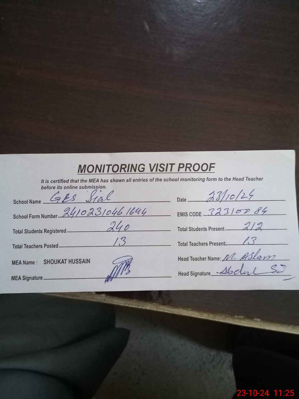| EMIS Code: 32310084 | Name of School: GES SIAL | |||