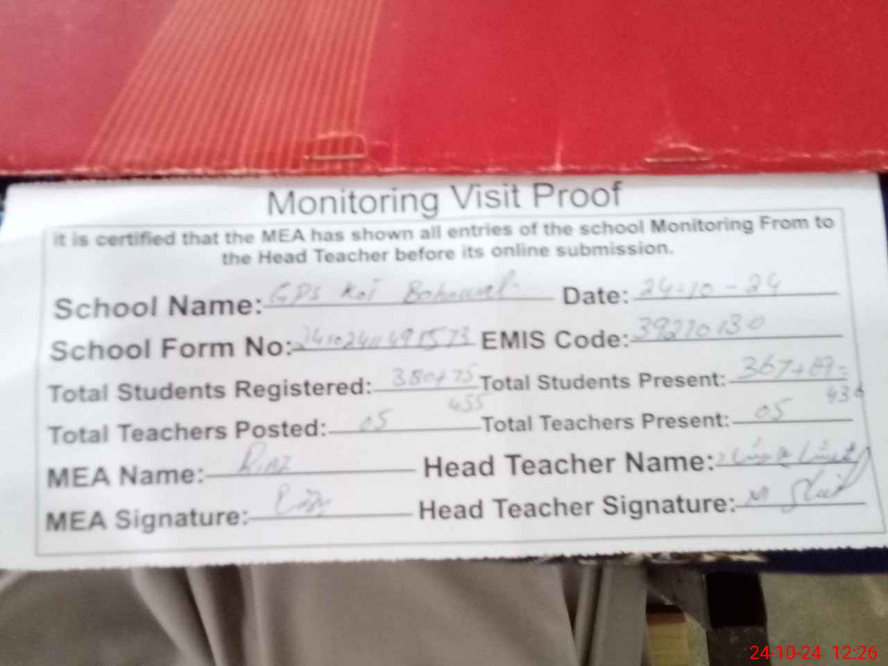 | EMIS Code: 39210130 | Name of School: GPS KOT BAHAWAL | |||