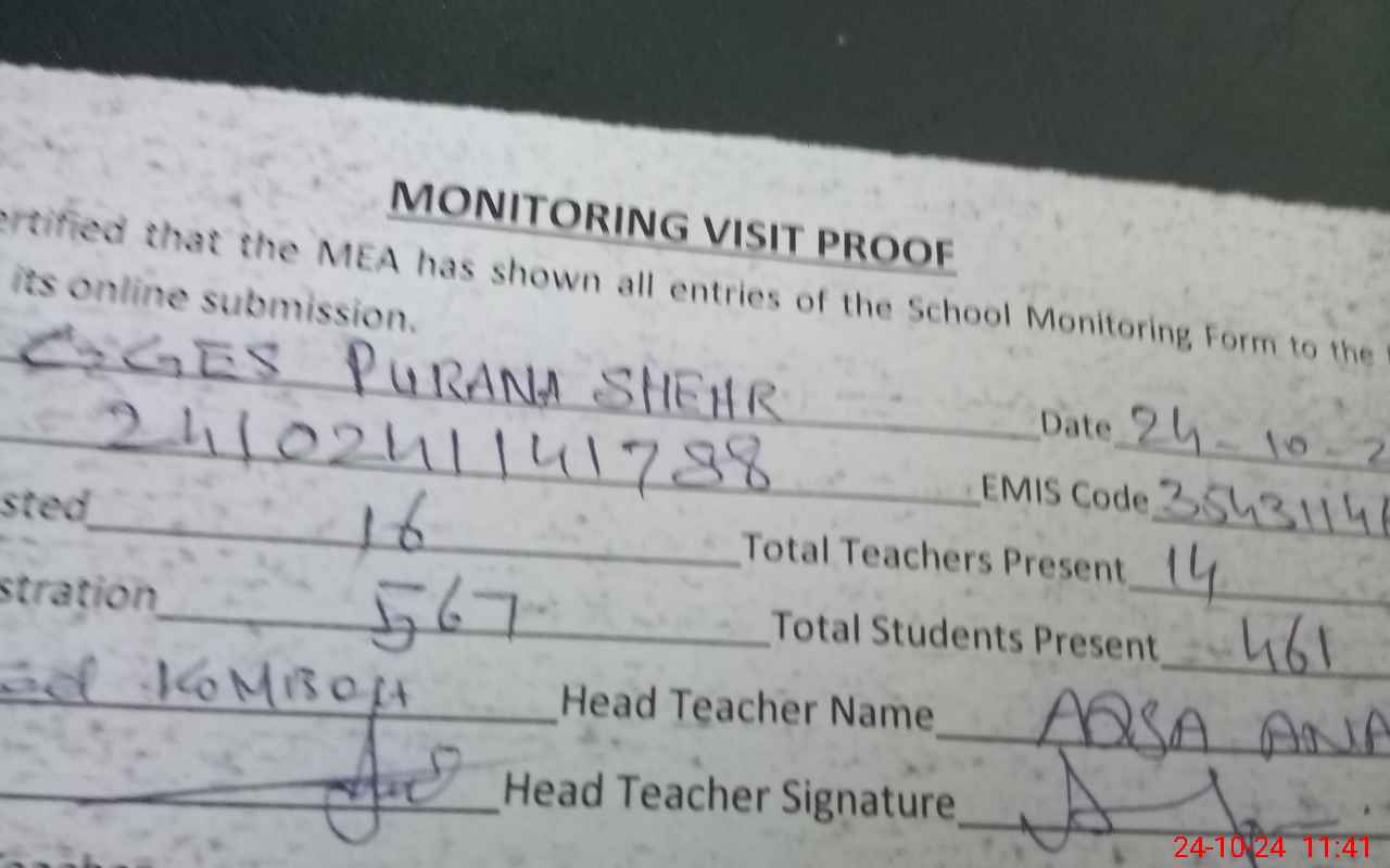 | EMIS Code: 35431146 | Name of School: GGES MC PURANA SHEHR | |||
