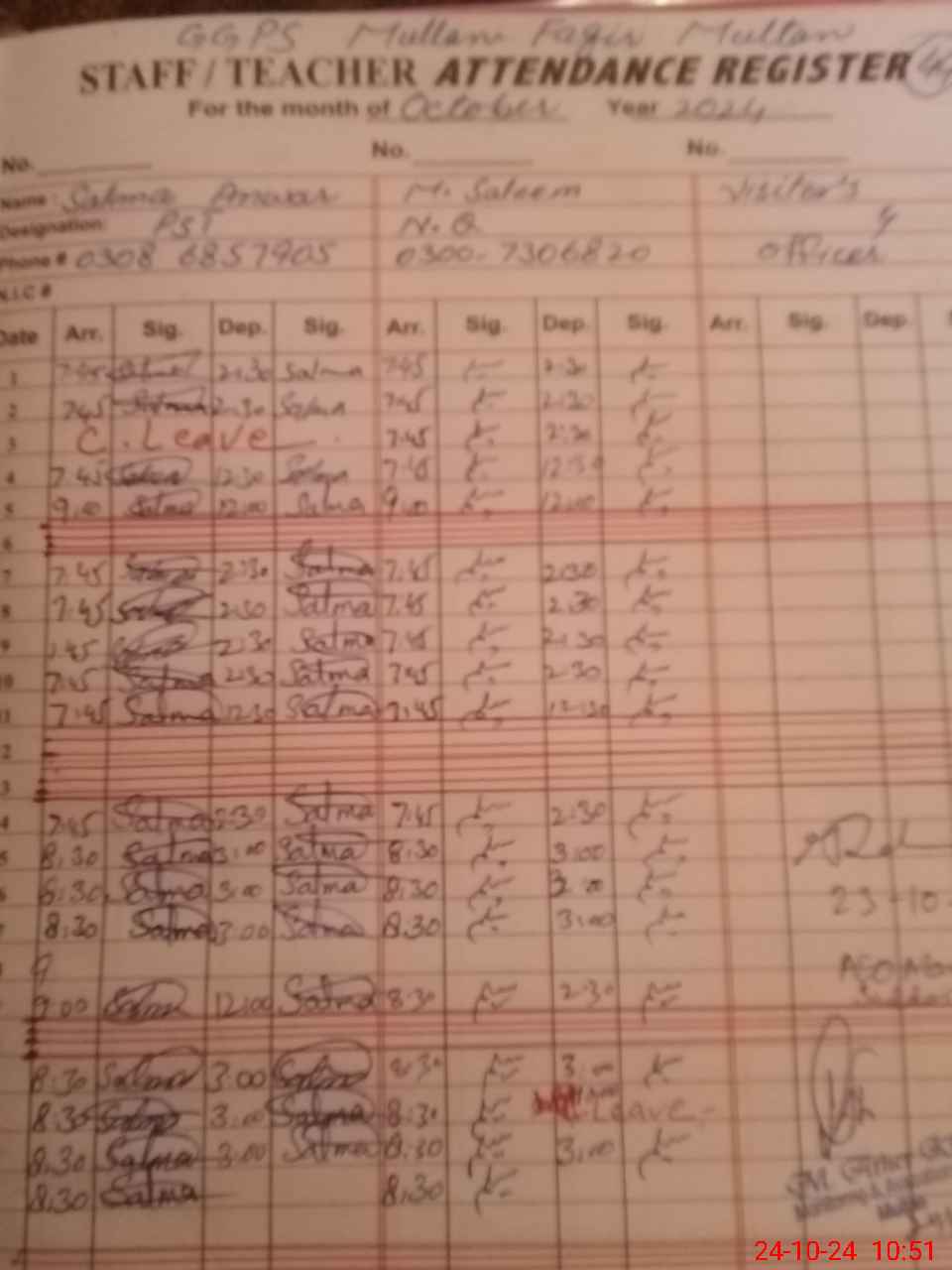 | Name: So**** As**** Designation: (School Headmaster's/Headmistress's) PST Phone/Cell Number: 03**** |