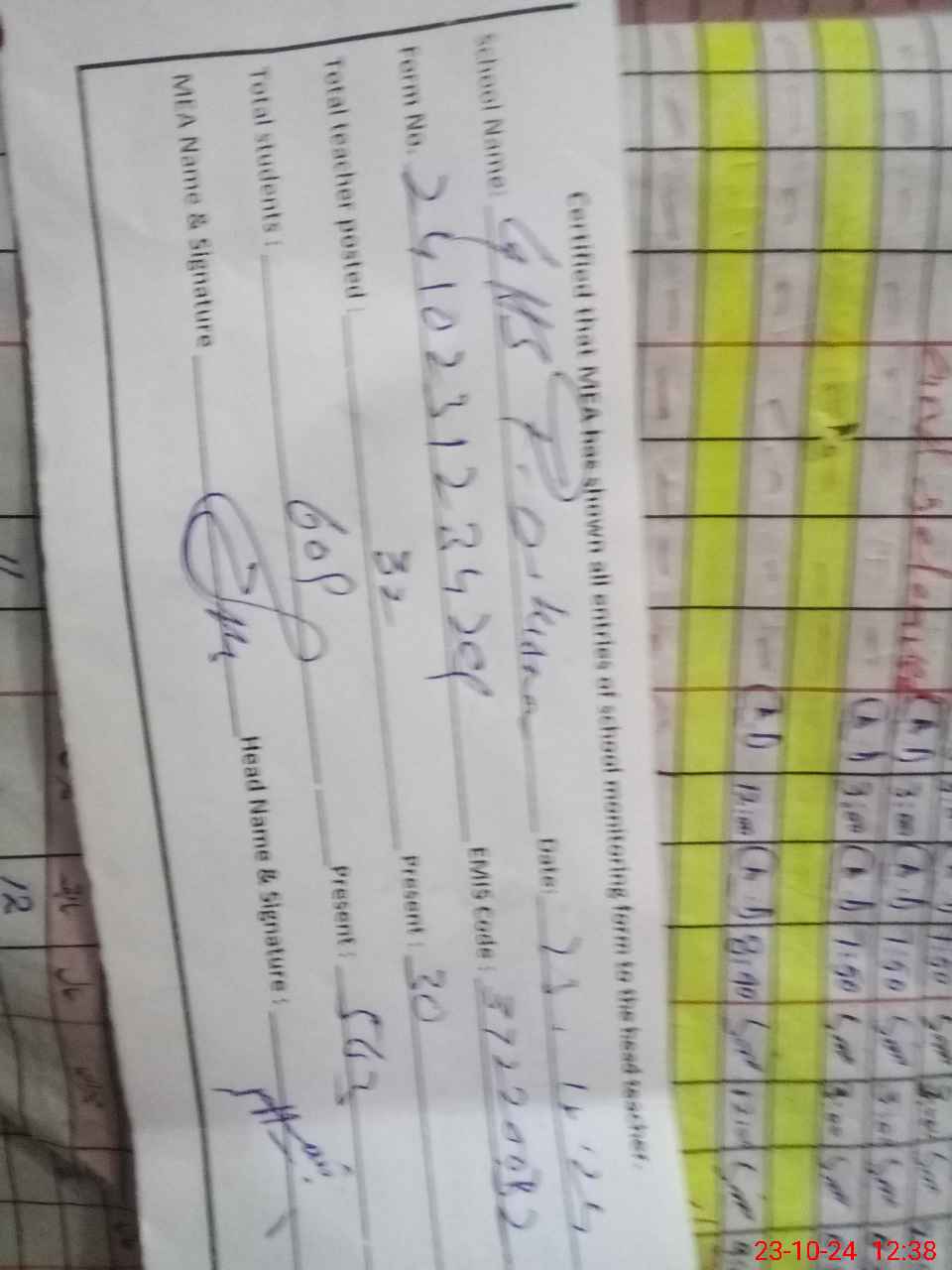 | Certified that this School was Inspected by the Undersigned MEA/DMO Today and the Information Stated Above is as Per Record. | |||||