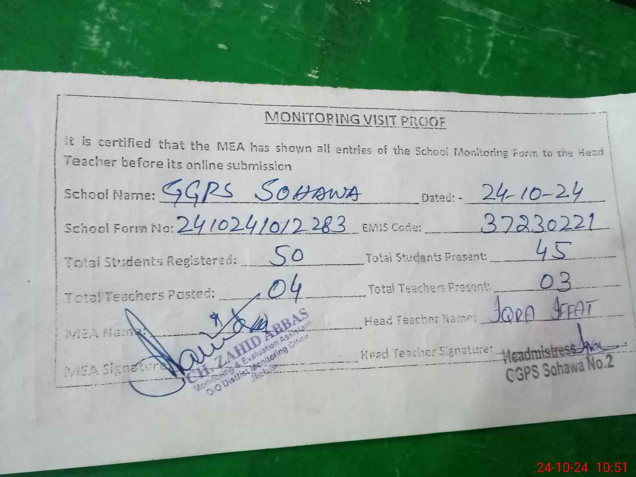 | EMIS Code: 37230221 | Name of School: GGPS SOHAWA NO.2 | |||