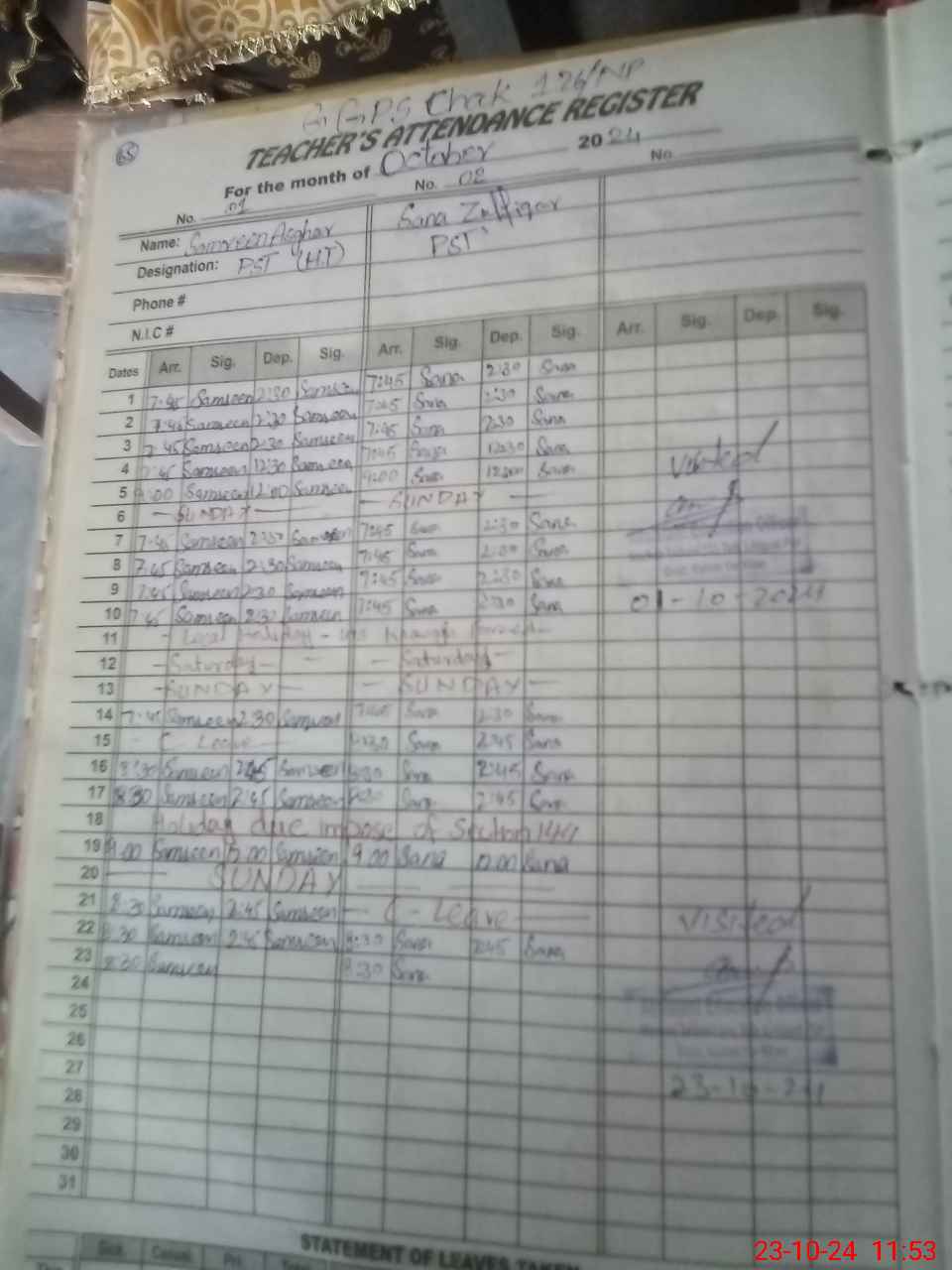 | Name: SA**** AS**** Designation: (School Headmaster's/Headmistress's) PST Phone/Cell Number: 03**** |