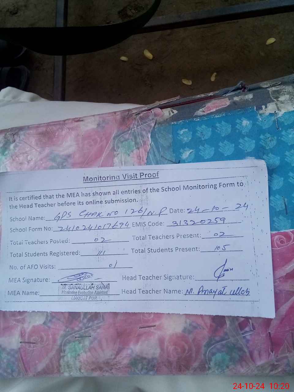 | EMIS Code: 31320259 | Name of School: GPS CHAK 126 NP | |||