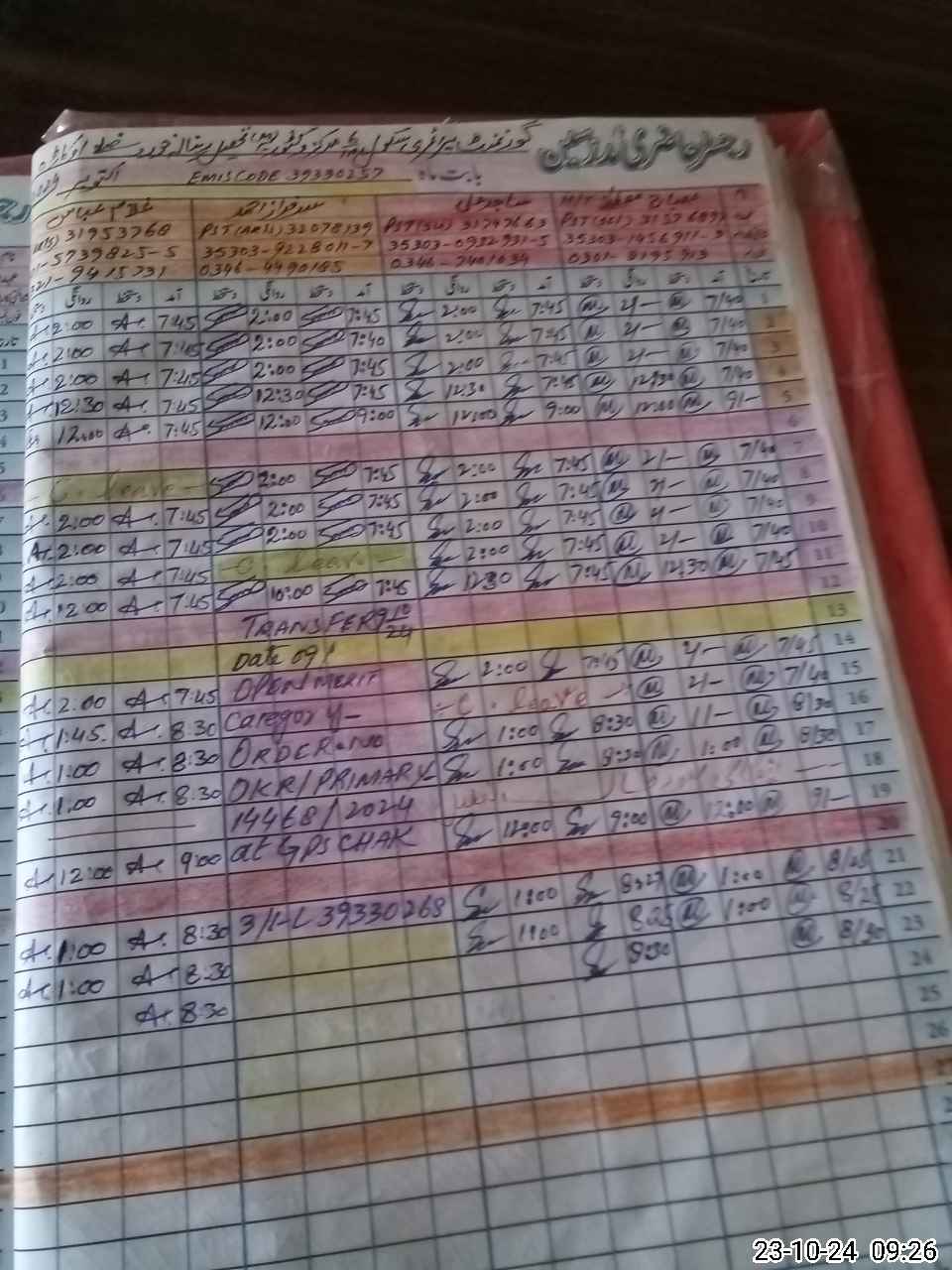 | Monitoring Date: 23-10-2024 | Start Time: 23-10-2024 09:24 AM | End Time: 23-10-2024 10:01 AM | Name of MEA: MU**** AH**** (R**** | |