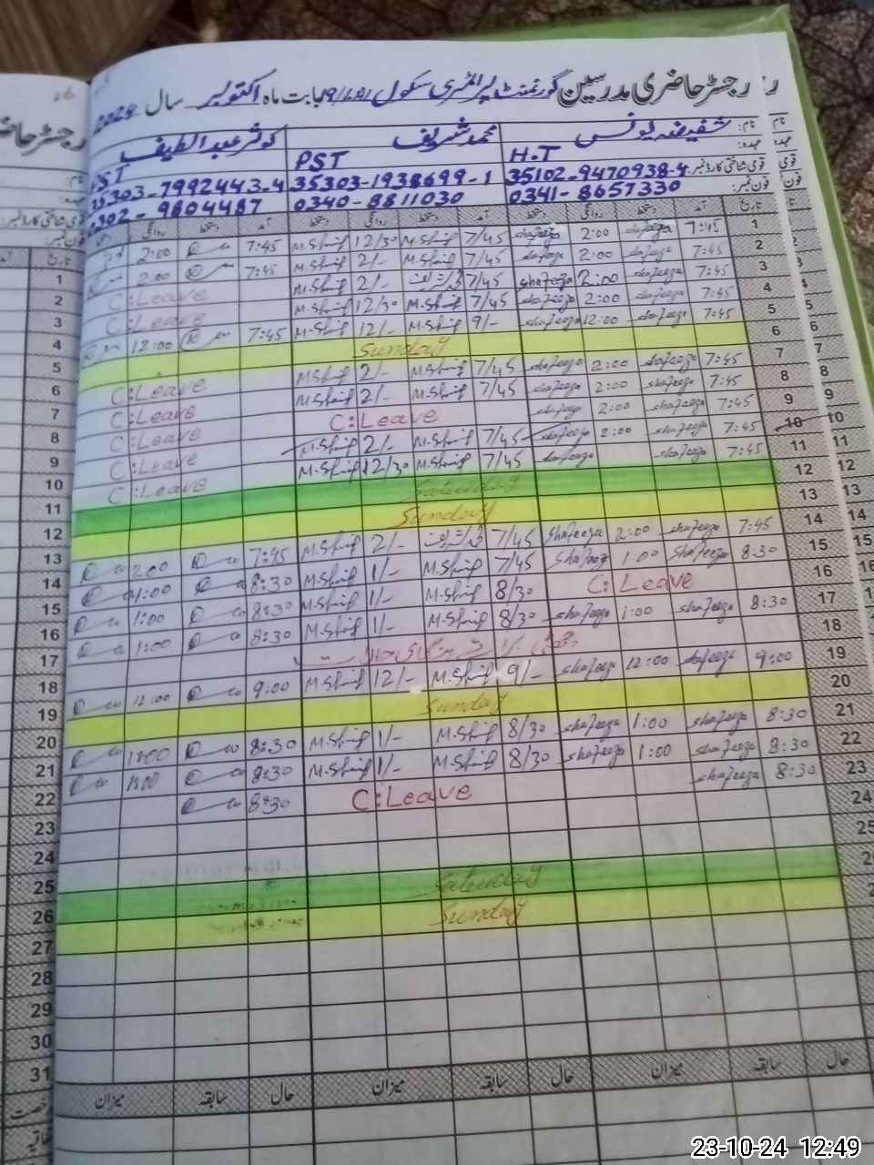 | Name: Sh**** Yo**** Designation: (School Headmaster's/Headmistress's) PST Phone/Cell Number: 03**** |