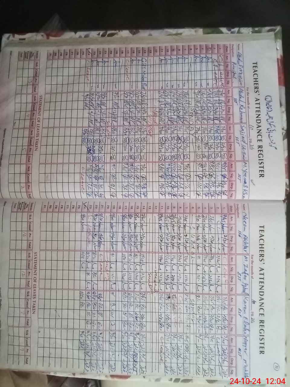 | Leave | Duty | Absent | Maternity | Medical | Ex- Pak |