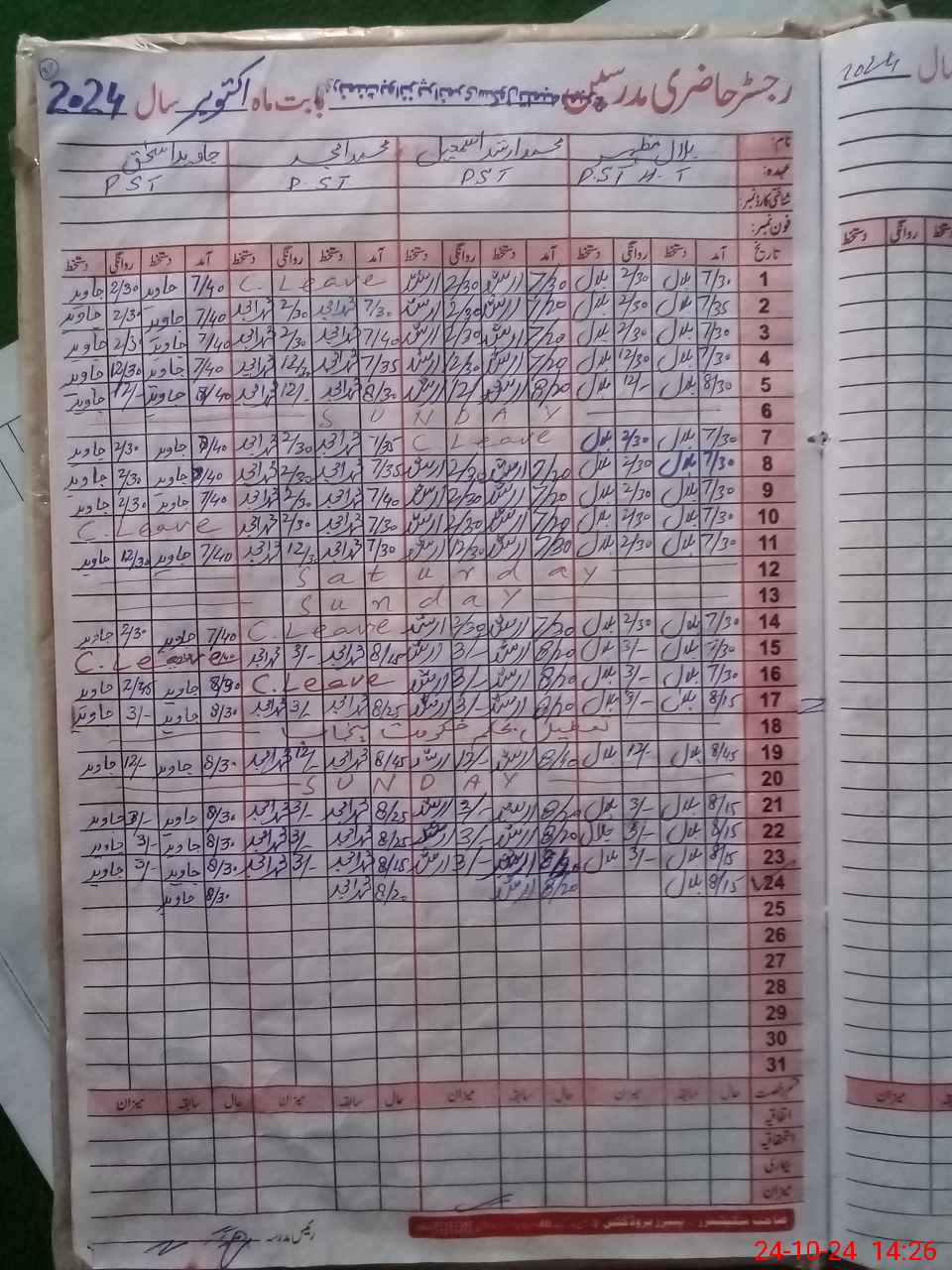 | Leave | Duty | Absent | Maternity | Medical | Ex- Pak |