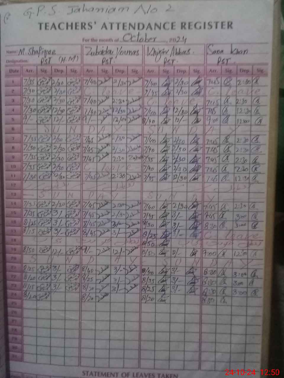 | Name: Mu**** Sh**** Designation: (School Headmaster's/Headmistress's) PST Phone/Cell Number: 03**** |
