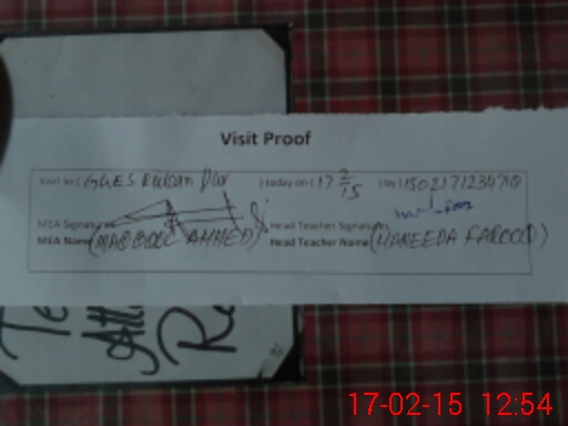 | Attendance Register | Head Teacher | MEA with School | Visit Proof |