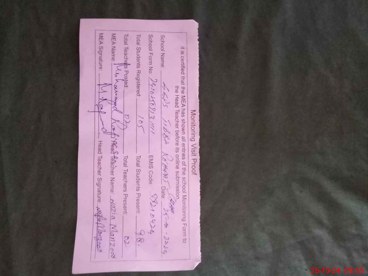 | Certified that this School was Inspected by the Undersigned MEA/DMO Today and the Information Stated Above is as Per Record. | |||||