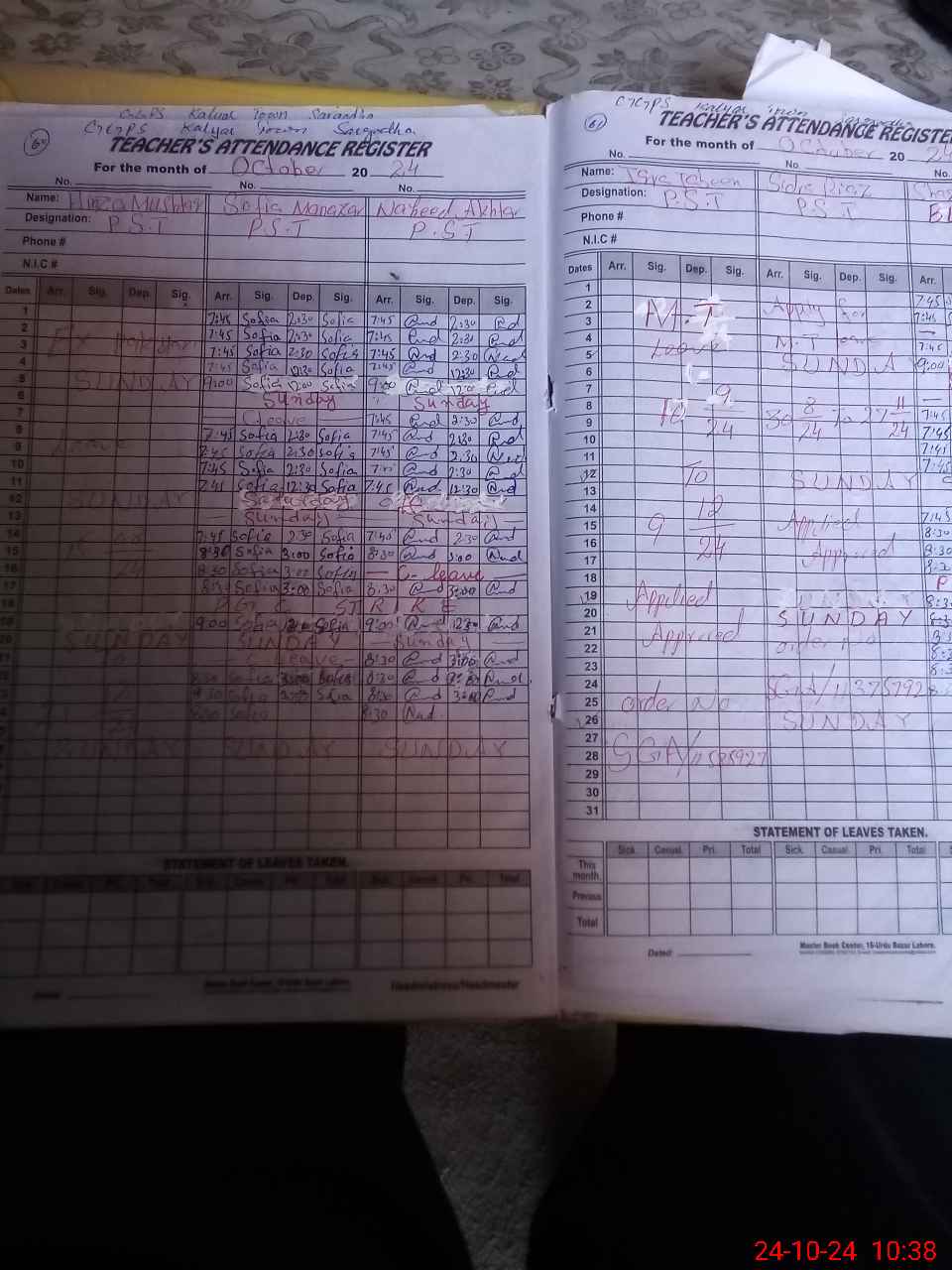 | Leave | Duty | Absent | Maternity | Medical | Ex- Pak |