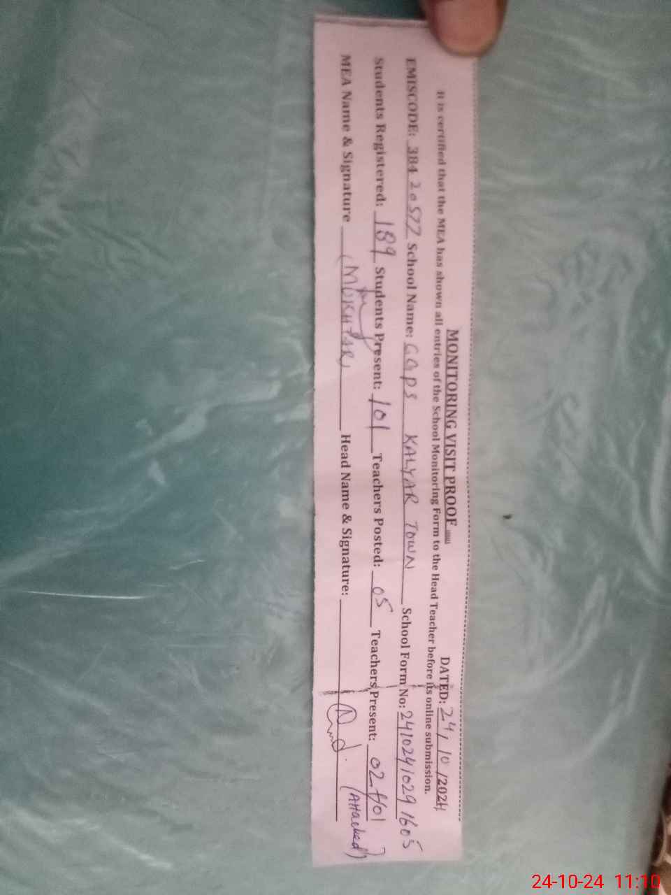 | Attendance Register | Head Teacher | MEA with School | Visit Proof |