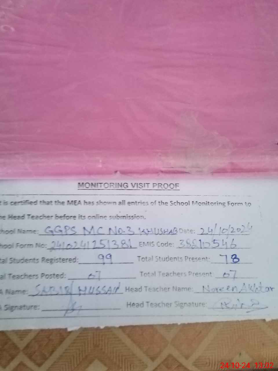 | EMIS Code: 38210546 | Name of School: GGPS MC NO.3 KHUSHAB | |||