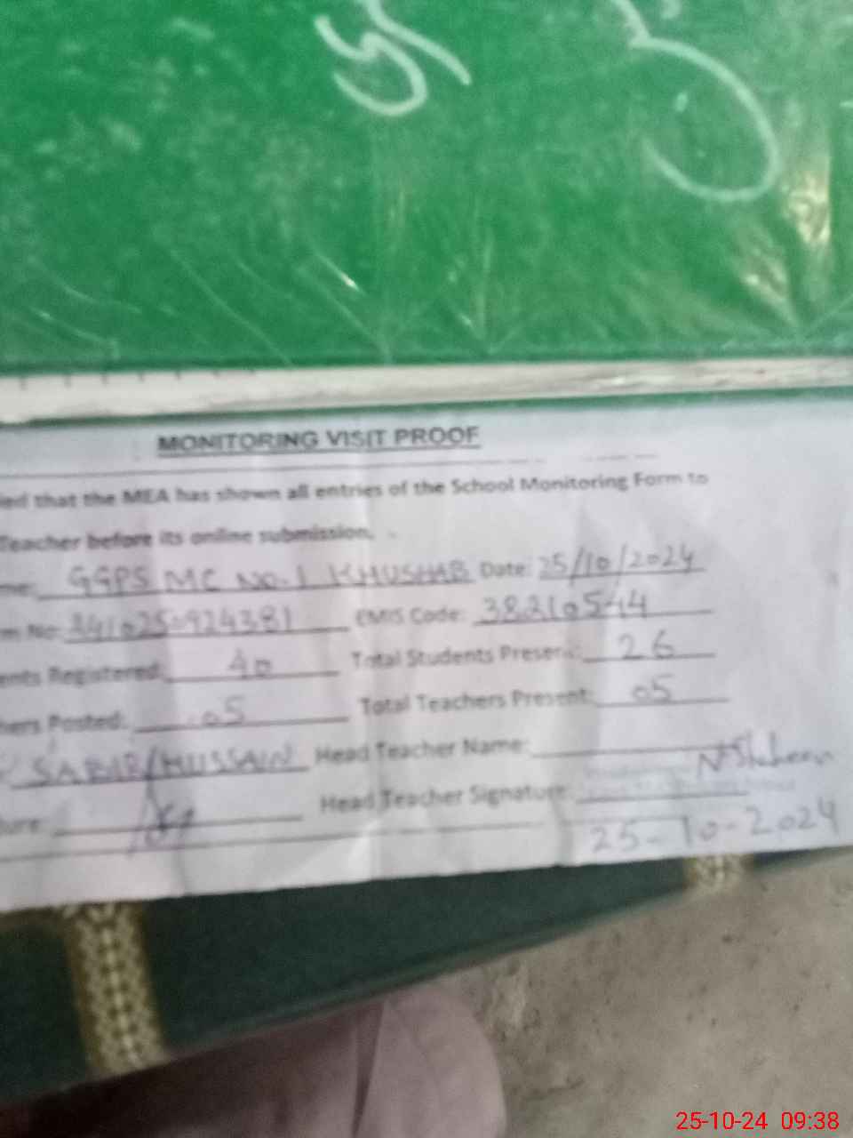 | EMIS Code: 38210544 | Name of School: GGPS MC NO.1 KHUSHAB | |||