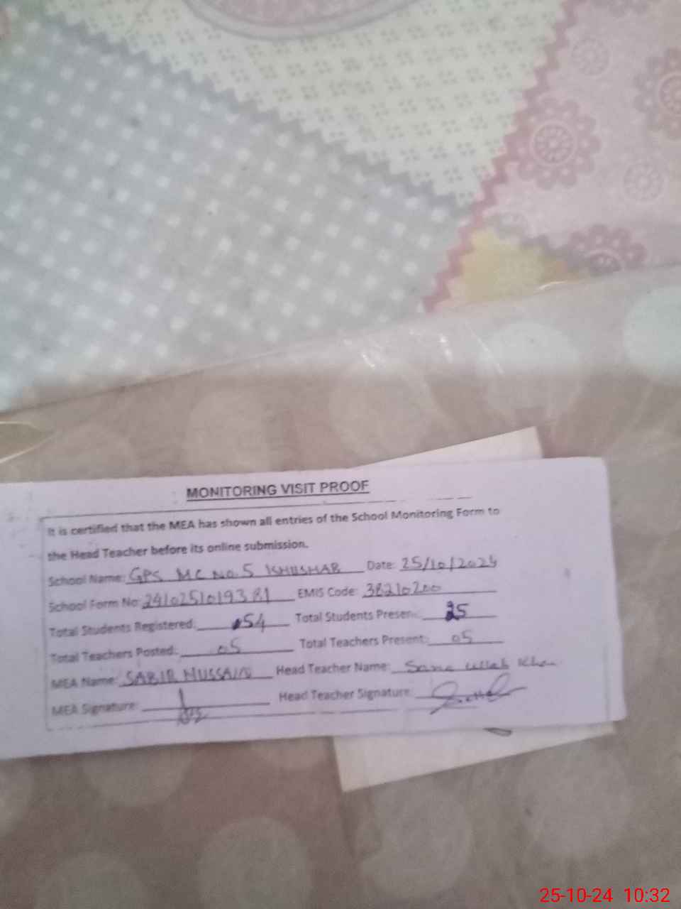 | EMIS Code: 38210200 | Name of School: GPS MC NO. 5 KHUSHAB | |||