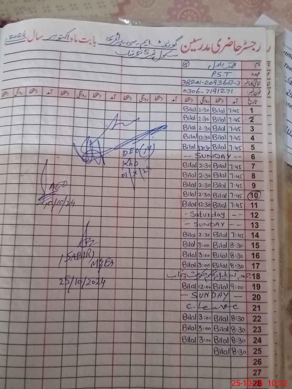 | Name: Sa**** Kh**** Designation: (School Headmaster's/Headmistress's) PST Phone/Cell Number: 03**** |