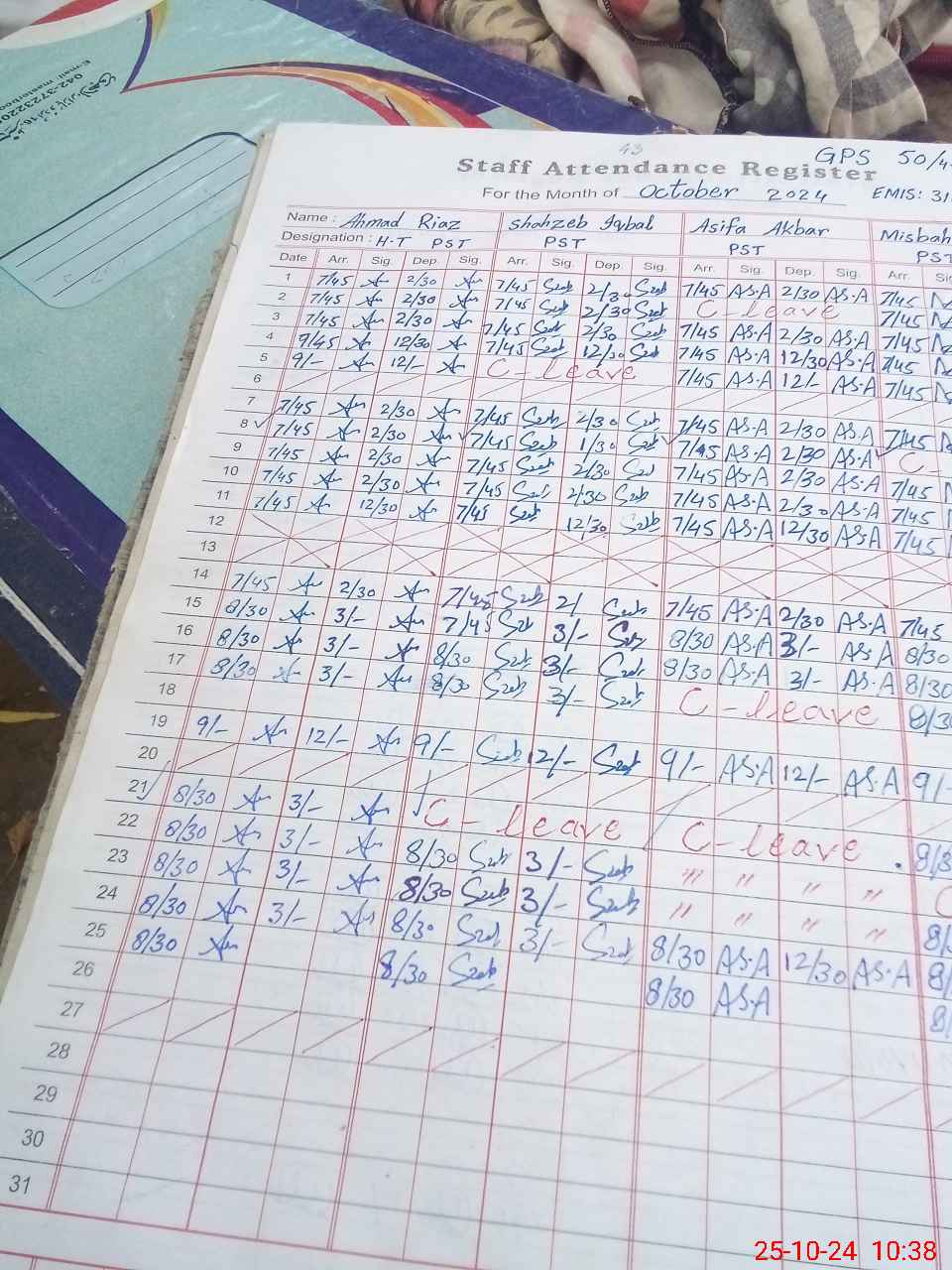 | Leave | Duty | Absent | Maternity | Medical | Ex- Pak |