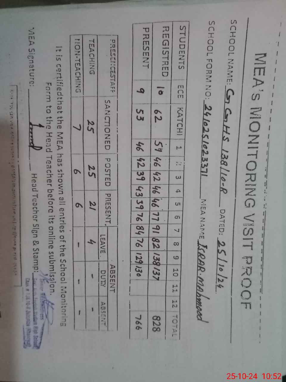 | Monitoring Date: 25-10-2024 | Start Time: 25-10-2024 09:06 AM | End Time: 25-10-2024 11:01 AM | Name of MEA: Is**** Me**** | |