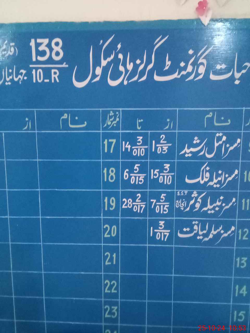 | EMIS Code: 36440057 | Name of School: GGHS 138/10-R, JAHANIAN | |||