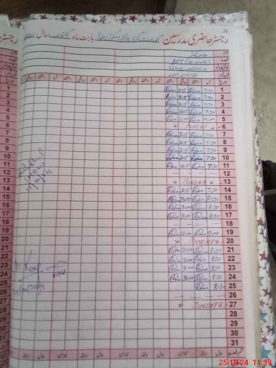 | Name: RU**** KO**** Designation: (School Headmaster's/Headmistress's) PST Phone/Cell Number: 03**** |