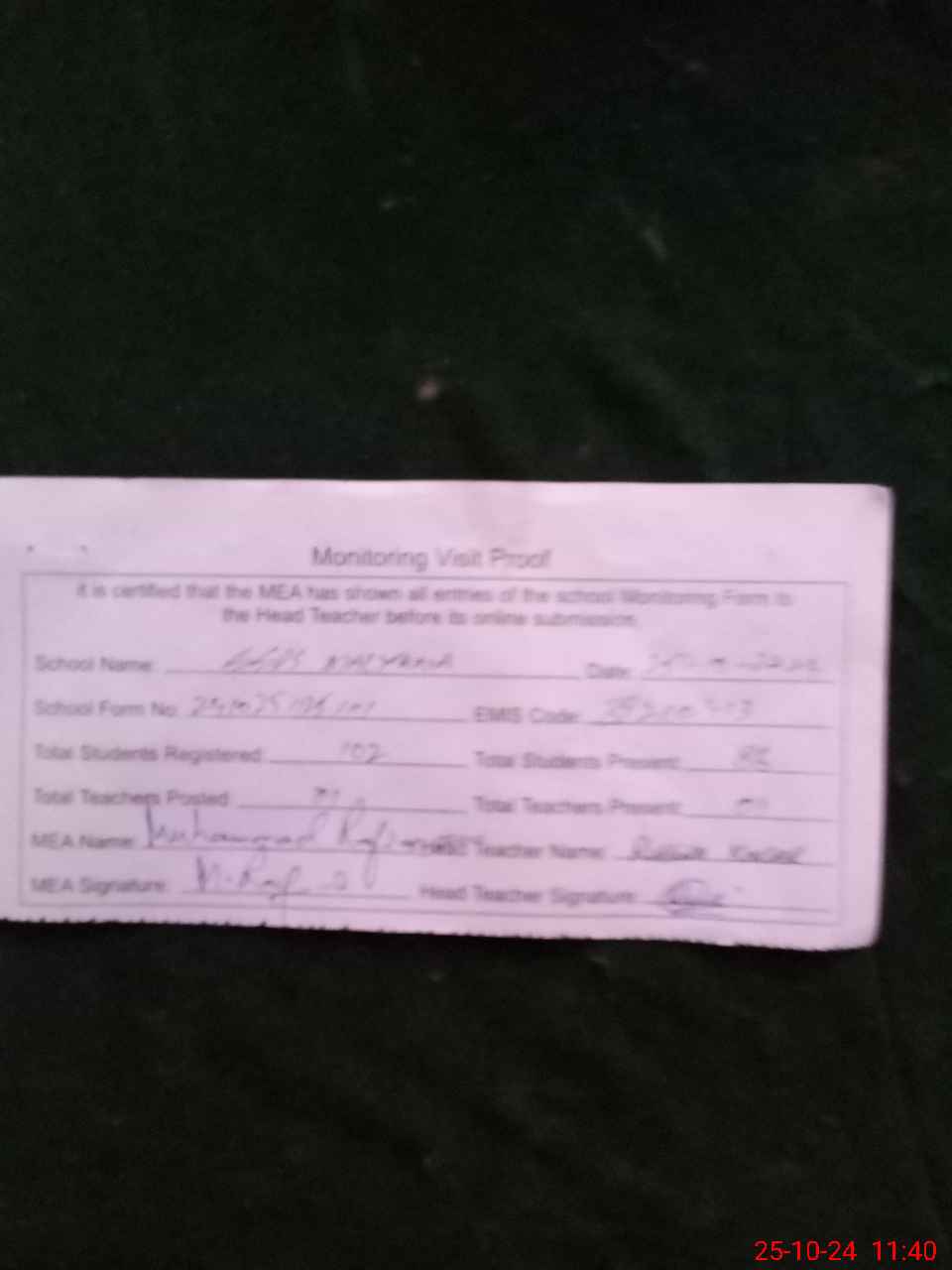 | Certified that this School was Inspected by the Undersigned MEA/DMO Today and the Information Stated Above is as Per Record. | |||||