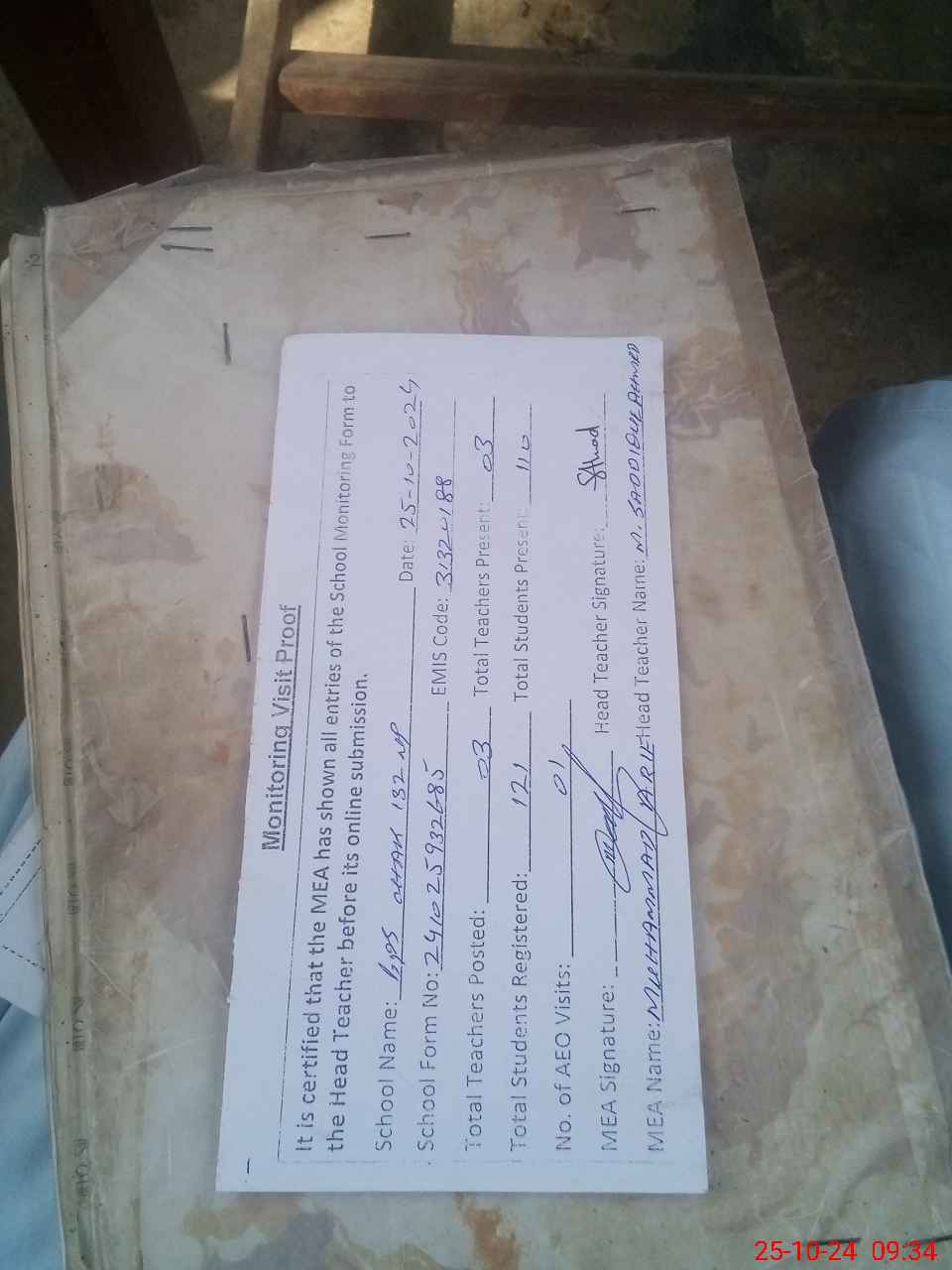 | Certified that this School was Inspected by the Undersigned MEA/DMO Today and the Information Stated Above is as Per Record. | |||||