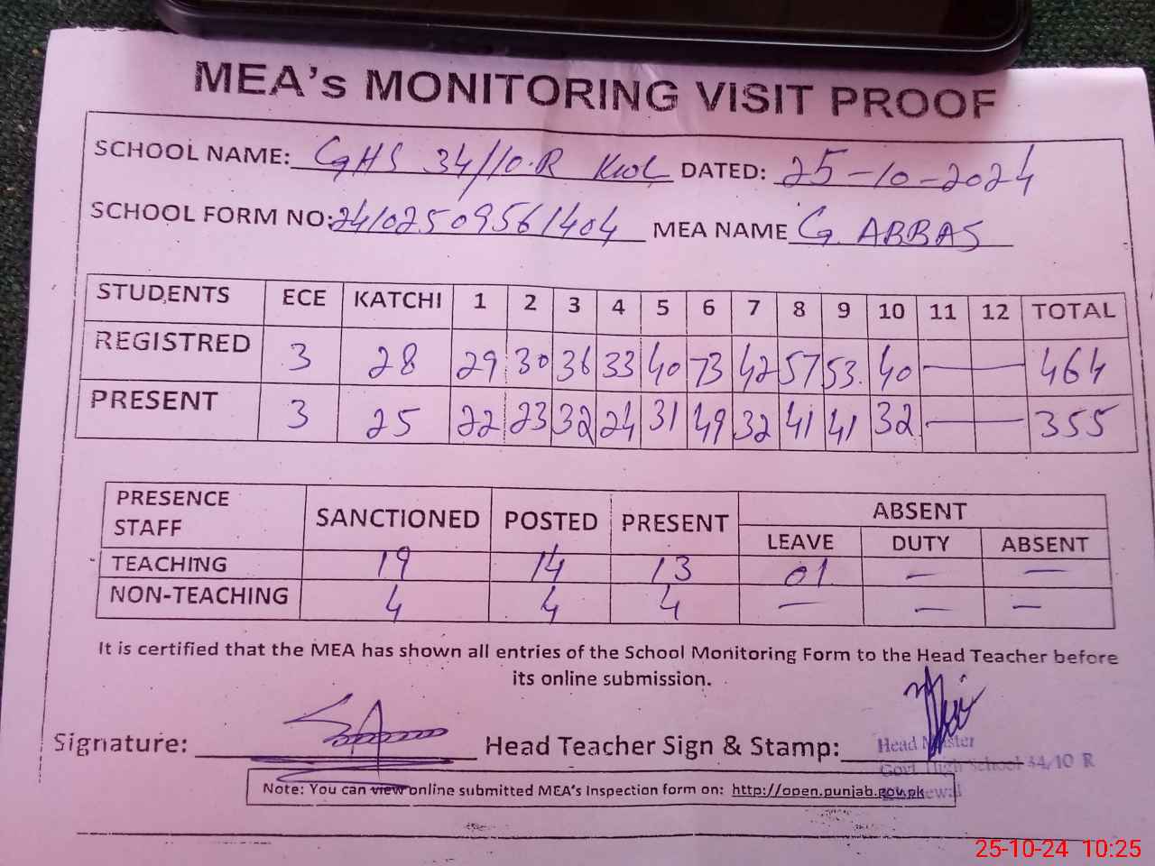 | EMIS Code: 36420028 | Name of School: GHS 34/10-R, KACHA KHUH | |||