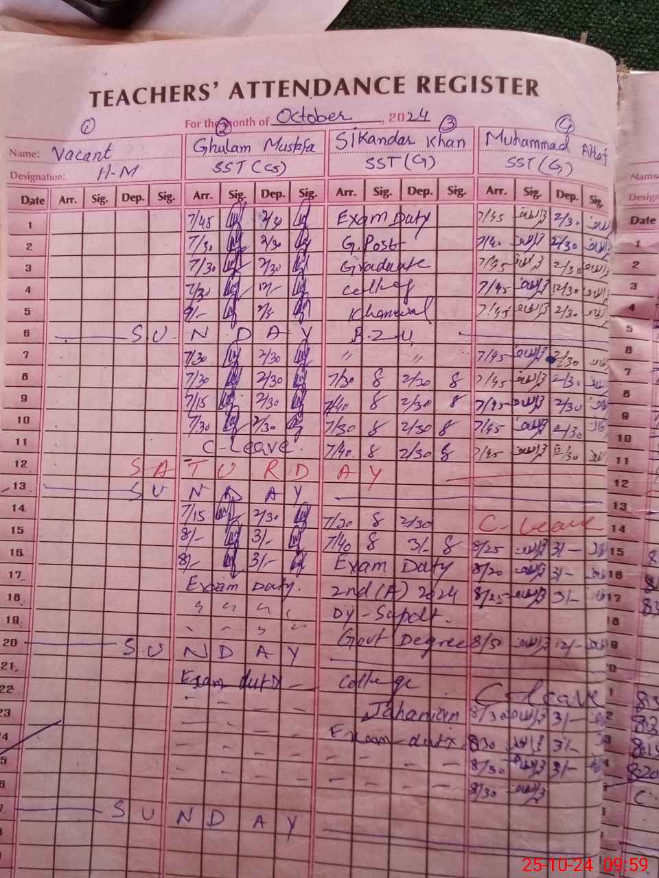 | 36**** | Gh**** Mu**** | SST | Regular | 0 | 0 | 0 | 0 | 0 | 0 | 0 | 0 | 0 | Exam Duty |