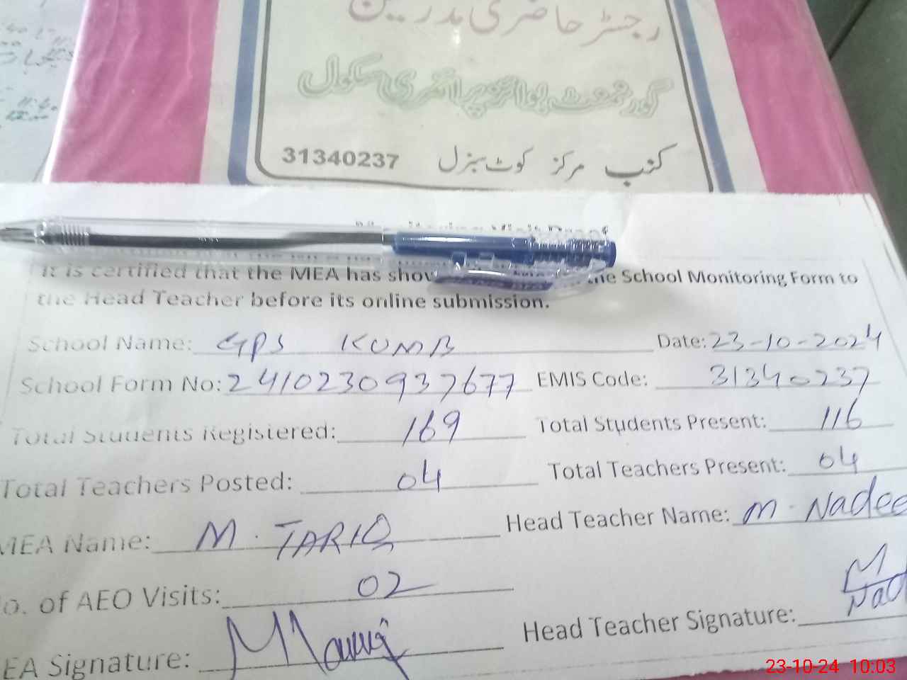 | EMIS Code: 31340237 | Name of School: GPS KUMB | |||
