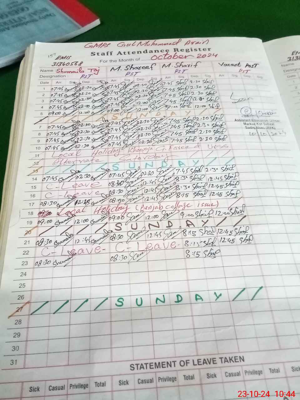 | Name: Sh**** Ta**** Designation: (School Headmaster's/Headmistress's) PST Phone/Cell Number: 03**** |