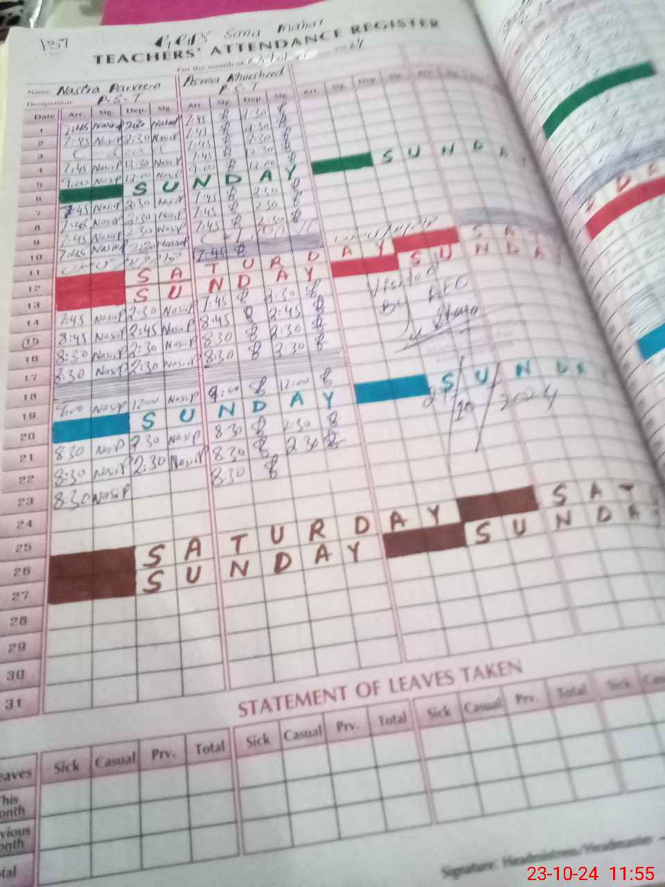 | Leave | Duty | Absent | Maternity | Medical | Ex- Pak |