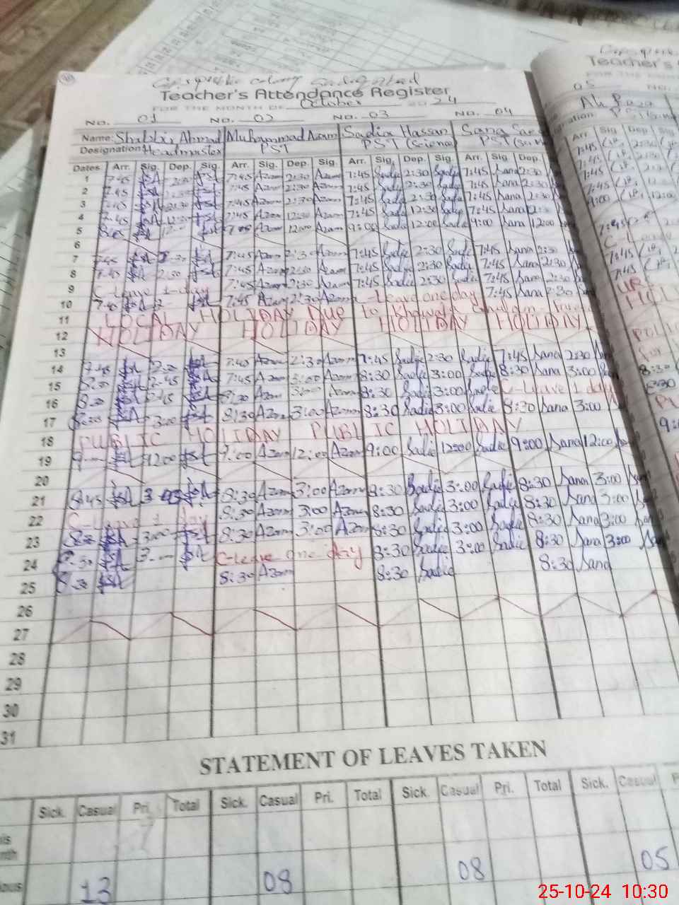 | Leave | Duty | Absent | Maternity | Medical | Ex- Pak |