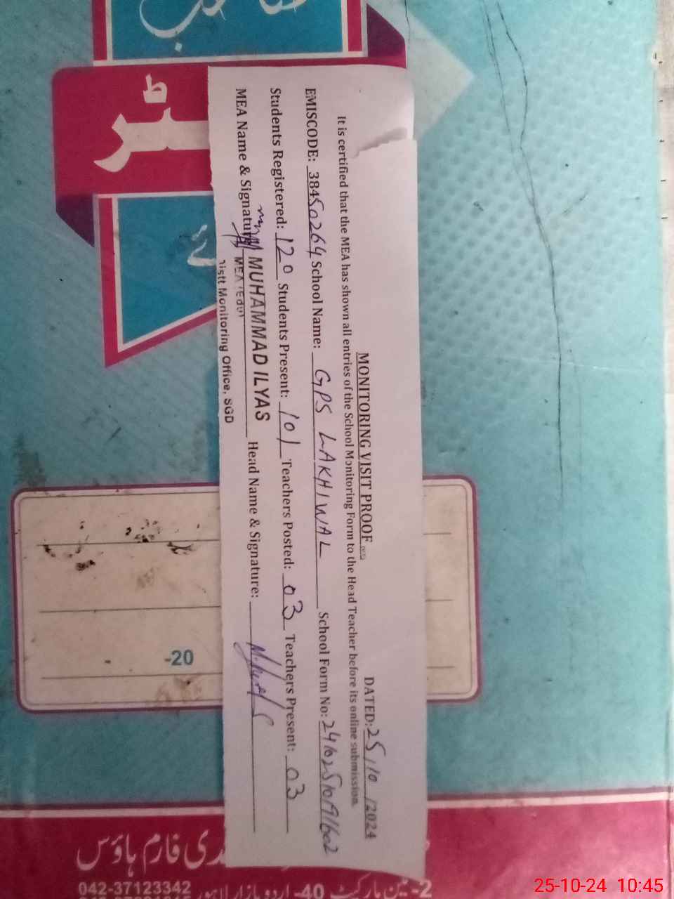| EMIS Code: 38450264 | Name of School: GPS LAKHI WAL | |||