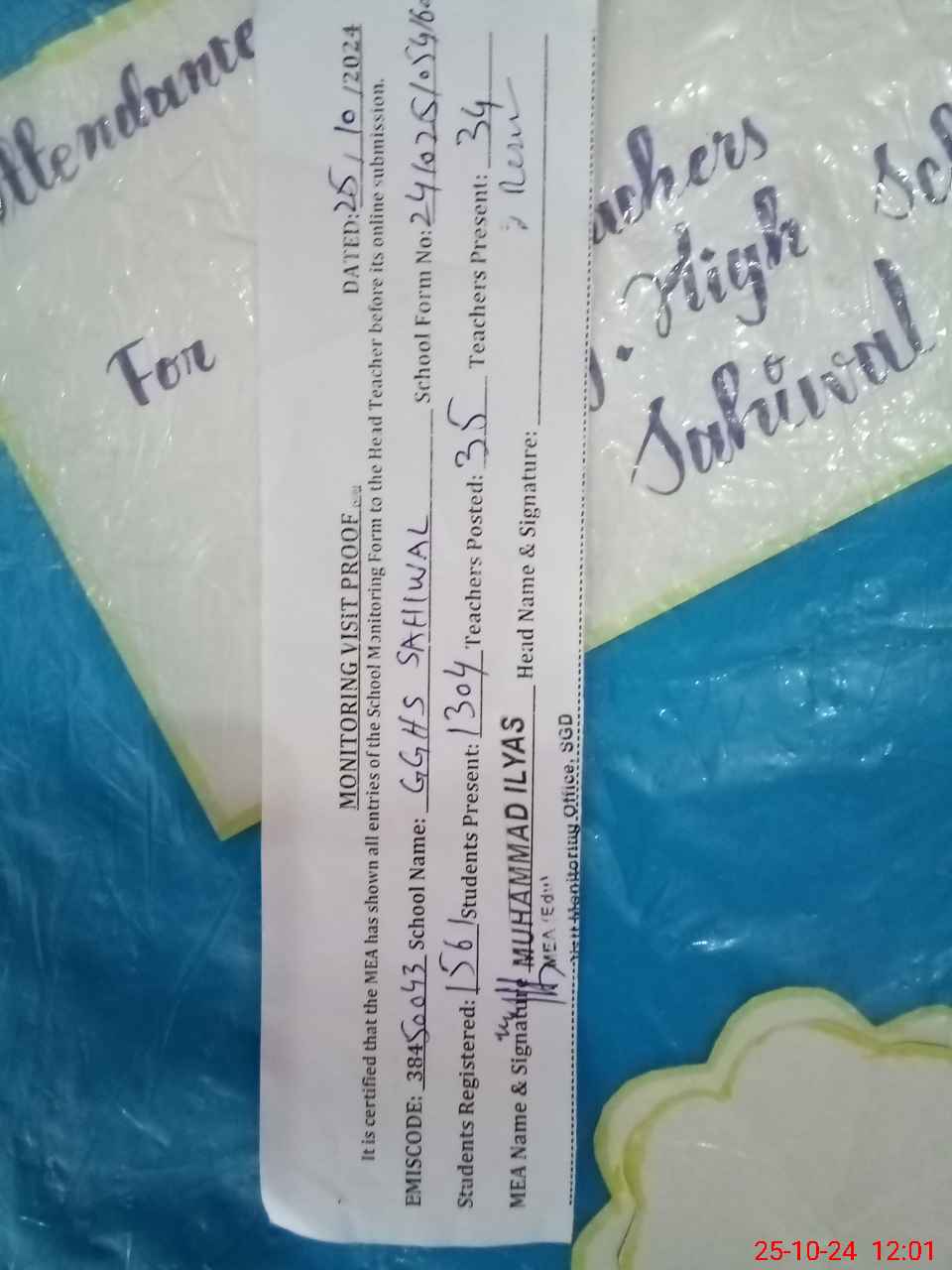 | EMIS Code: 38450043 | Name of School: GGHS SAHIWAL | |||