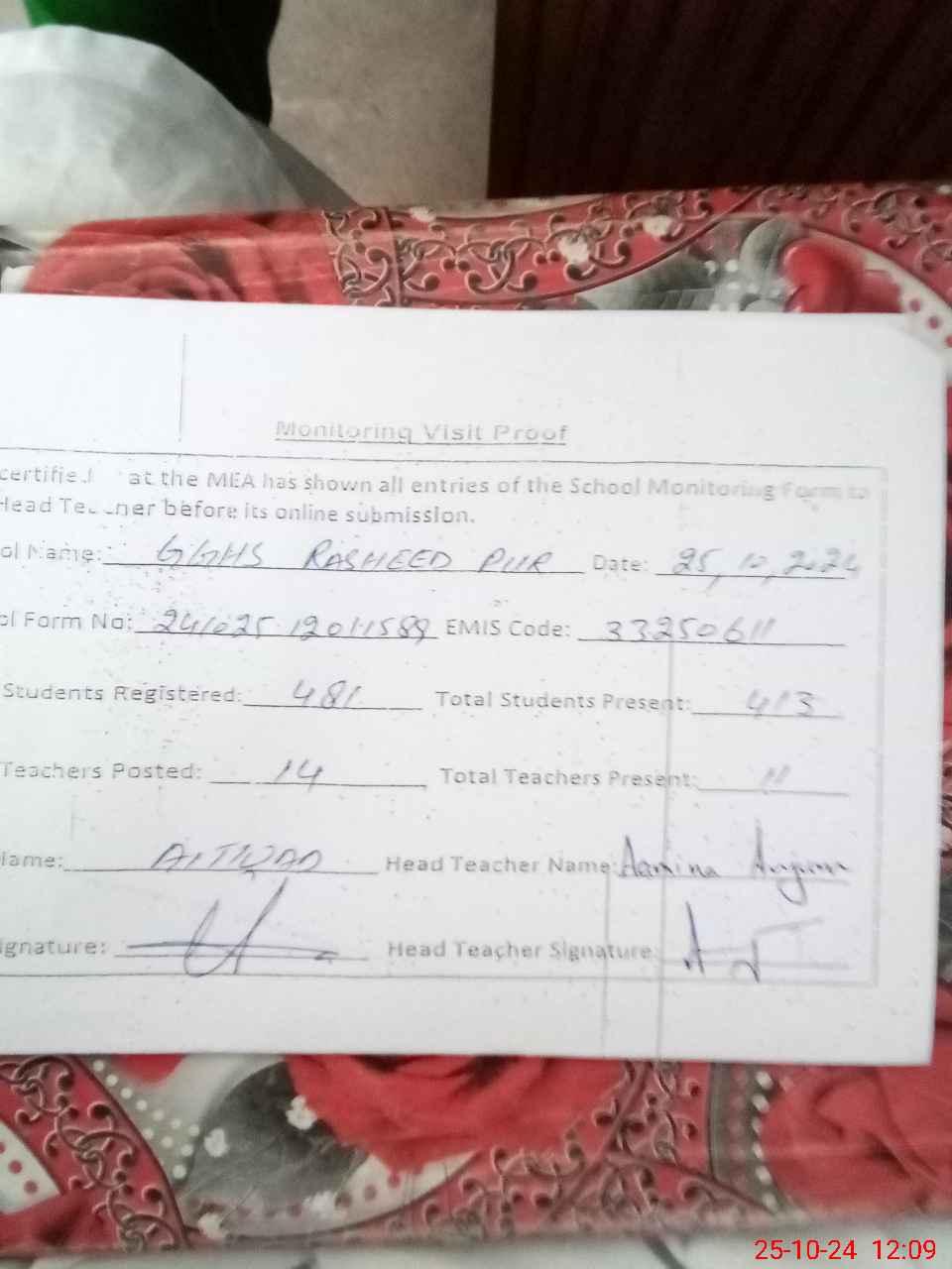 | EMIS Code: 33250611 | Name of School: GGHS RASHEED PUR | |||