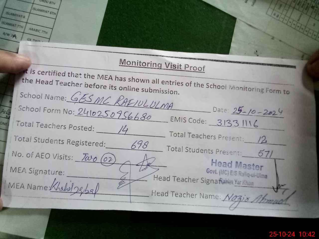 | Remarks (Use Separate Page if Required): Class verification is not updated on mea tab as per sis and three classes are sitting in veranda | |||||