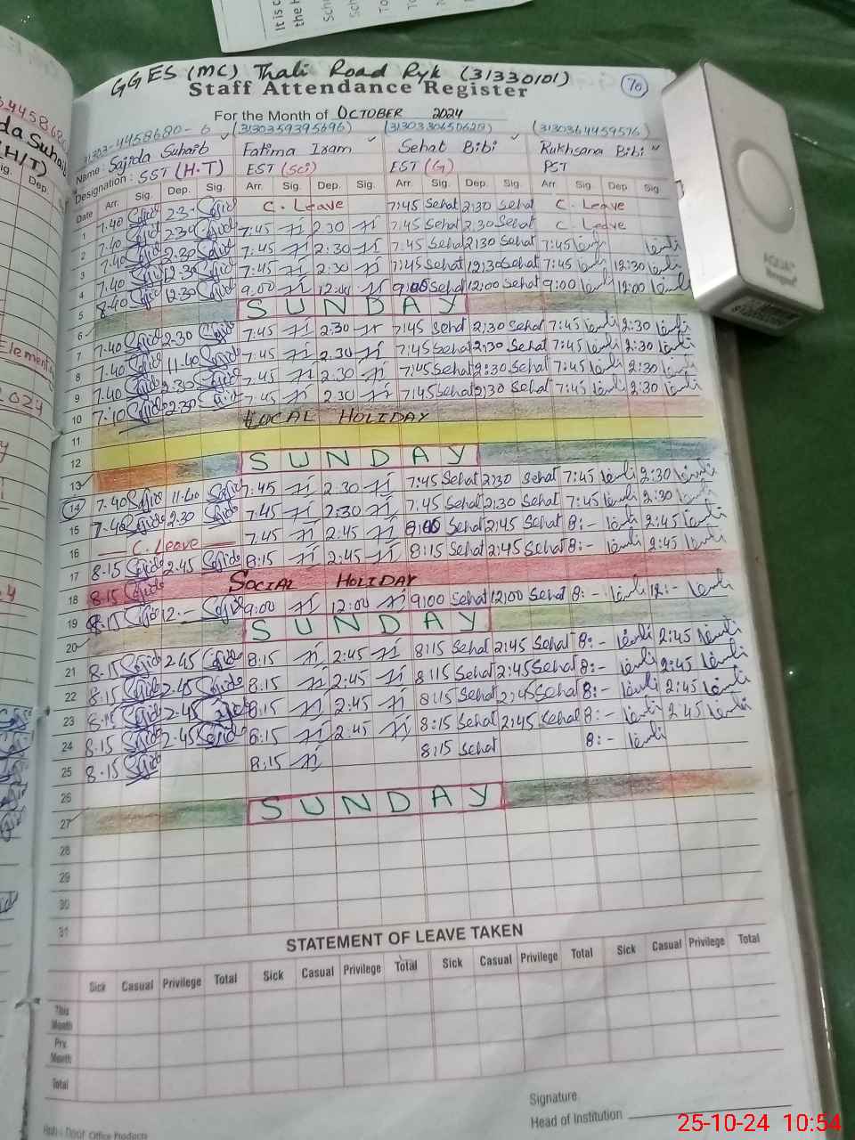 | 31**** | Su**** Na**** An**** | PST | Regular | 1 | 0 | 0 | 0 | 0 | 0 | 0 | 0 | 1 | Casual |