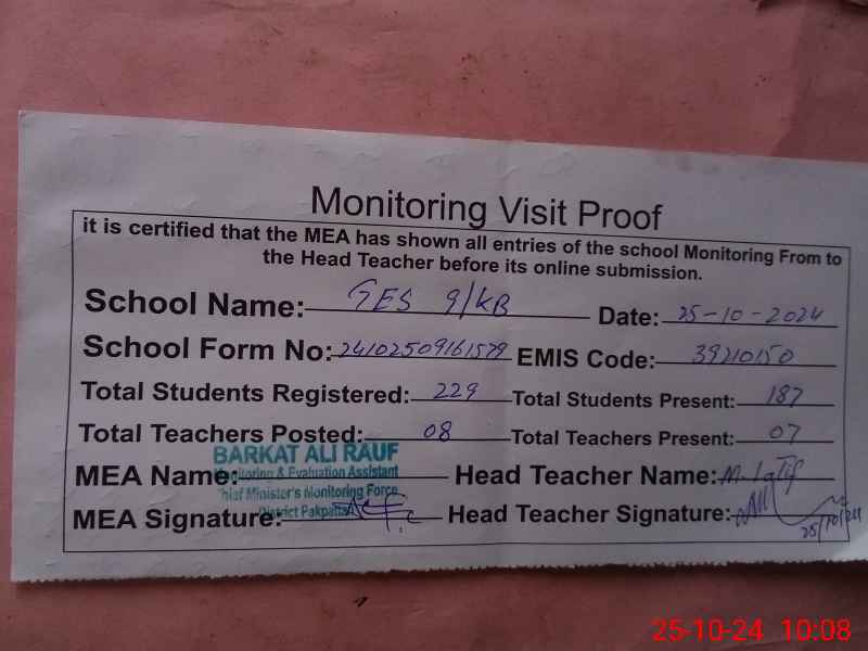 | EMIS Code: 39210150 | Name of School: GES 9 KB | |||