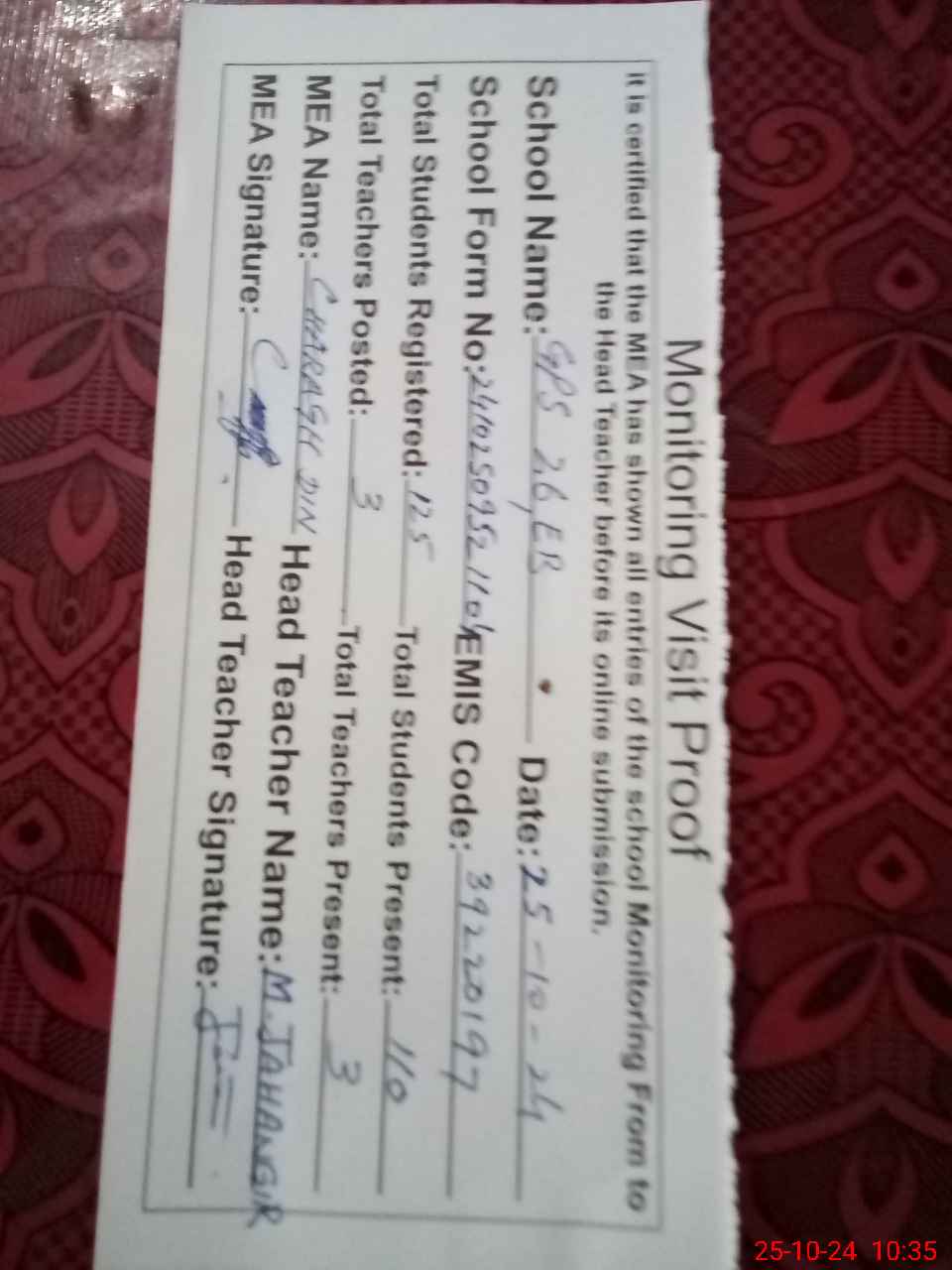 | Certified that this School was Inspected by the Undersigned MEA/DMO Today and the Information Stated Above is as Per Record. | |||||